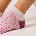 Socquettes pailletées en coton peigné léopard - Blanc et lie de vin 37-40